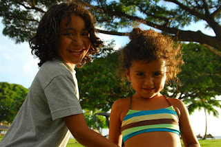 As I mentioned, Spencer had some meetings one evening and so he thought it would be a good idea to find a nice beach in Waikiki, spend a few hours together and then leave me and the kids there while he went to his meetings. He'd be back in a couple hours...seemed like a good plan right? Well, the fun lasted for about 45 minutes after he left and I just figured I had to hold it together for a bit longer until he got back. It was torture!!! The kids didn't care to swim because I wasn't swimming, so they played in the grass for some time and then it started raining. That was the beginning of the end.