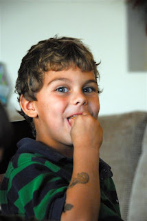 Thankfully I've been able to affect the next generation. Kohl and Nana love it when they catch me sneaking my fix. Sometimes it'll turn into a true PB&J binge that can last an hour. It's amazing what their little bellies can put away, the guilty pleasure of it all adding to the excitement. Nana likes hers cut in triangles so she can eat it from the middle out to the edges. This always leaves behind the tell tale sign of good eats. I think this particular occasion Irene had gone early to help Kohl's class with a holiday art project. The true breakfast of champions.