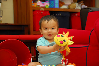 Joaquin continues to grow and get more of a personality. Just recently he picked up playing peek-a-boo and get's quite a kick out of it. He's got to be the happiest baby alive. He doesn't complain much, even when he's teething like crazy. I think we're now at 8 chompers in 7 months. OUCH!